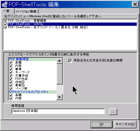 これは、PDF-ShellToolsの設定を、編集するもので、いくつかのツール・オプションを、お気に入りの環境に構成します。