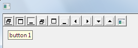 Пример6: ( Тулбар с кнопками, на которых можно отображать свои битмапы. В этом примере извлекаем иконки из файла SetupAPI.dll и при окончании строки автоматический перенос кнопок, а так же использование разделителей(сепараторов))