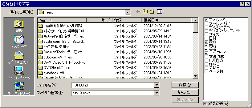 「結果の表示」にチェックをすると、出力ファイルの形式(拡張子)に関係付けられたソフトで、出力ファイルをその場で表示します。