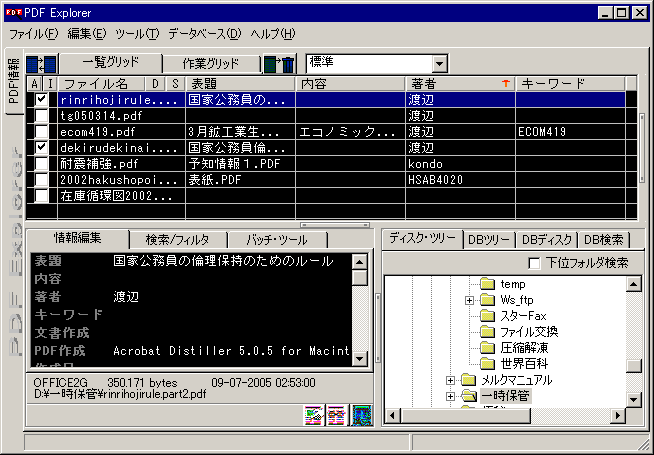 注意すべきは、このグリッド間の操作は、リストを出力したり、文書を調べたりするために、グリッドに文書情報を表示させているだけで、パソコンのディスクのファイルを、物理的にフォルダ移動させているわけではない点です。