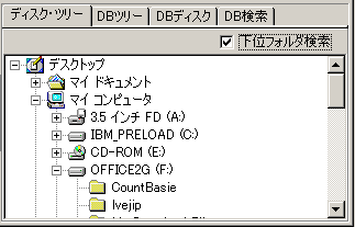 この表示は、「DBツリー」でルートを指定して、「下位フォルダ検索」にチェックを入れた状態と同じです。
